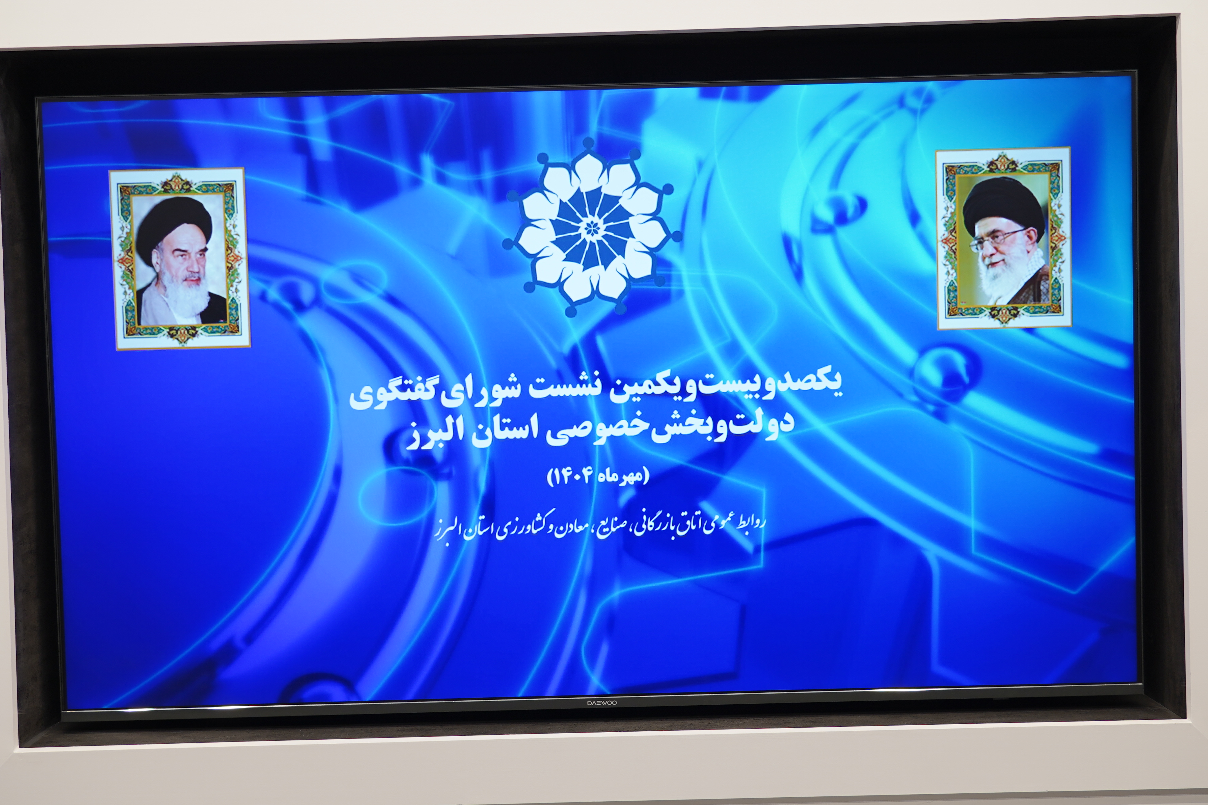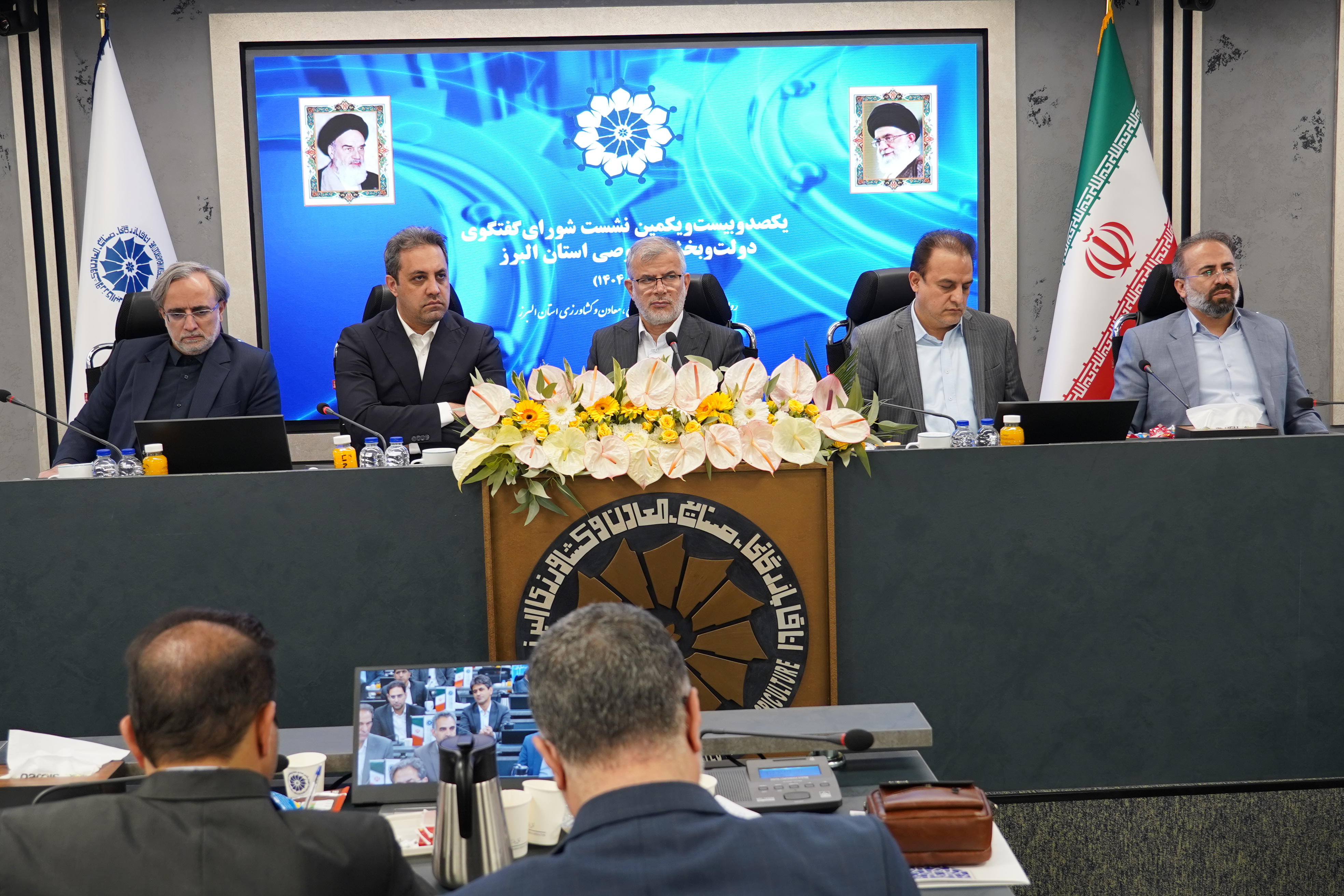 یکصد و بیستویکمین نشست شورای گفتوگوی دولت و بخش خصوصی استان البرز به ریاست دکتر عبداللهی استاندار محترم و دبیری پرهام رضایی رئیس اتاق بازرگانی البرز و با حضور حسن مددی دادستان عمومی و انقلاب مرکز استان، مدیران ارشد دستگاههای اجرایی و بخش خصوصی استان در محل اتاق بازرگانی البرز برگزار شد.