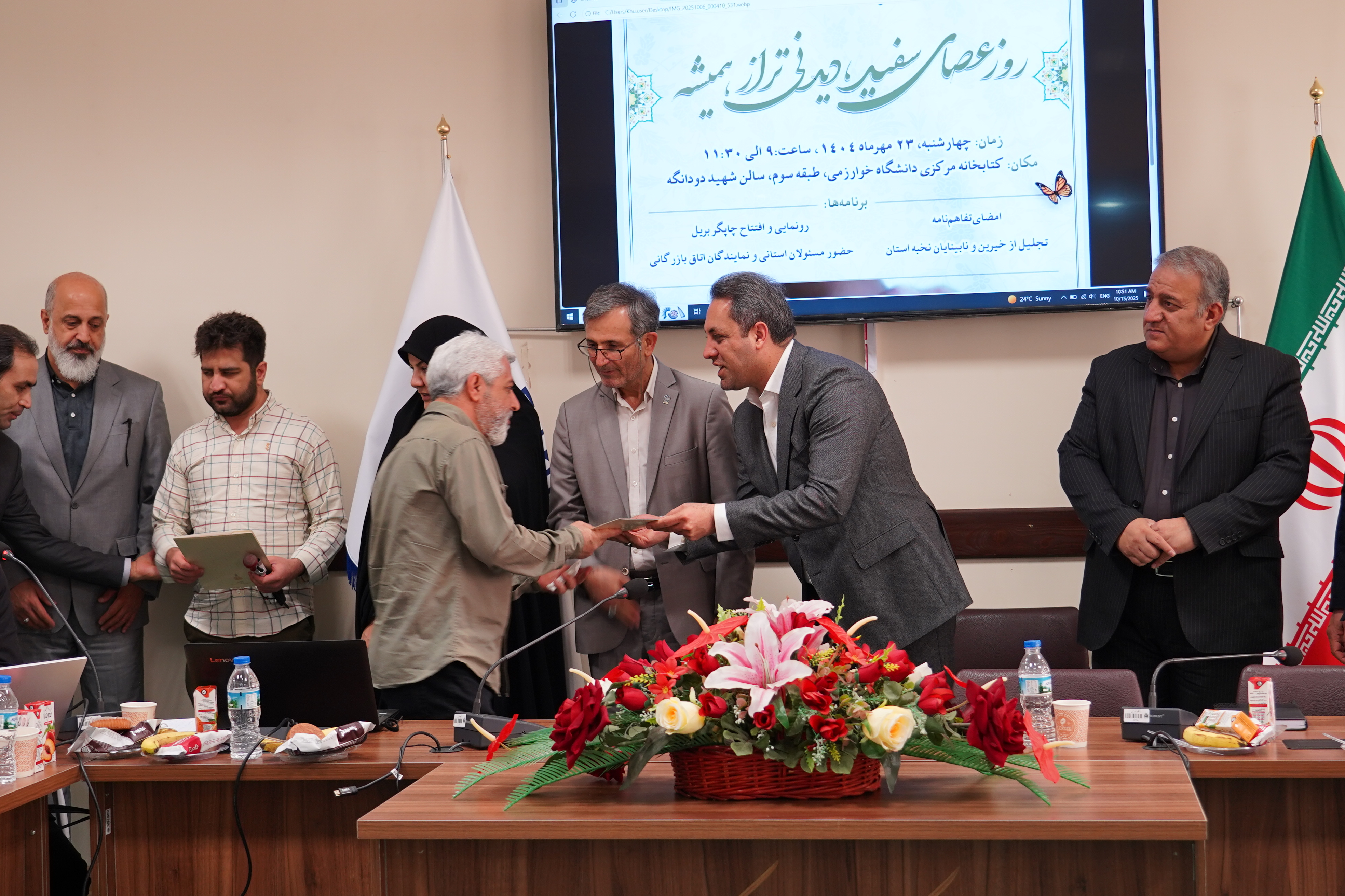 آئین نکوداشت روز عصای سفید در دانشگاه خوارزمی کرج برگزار شد و طی مراسمی از پرهام رضایی رئیس اتاق بازرگانی، صنایع، معادن و کشاورزی استان البرز به پاس همکاری و مشارکت در تهیه و راهاندازی دستگاه چاپگر بریل ویژه نابینایان تقدیر و تجلیل به عمل آمد.